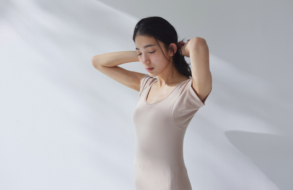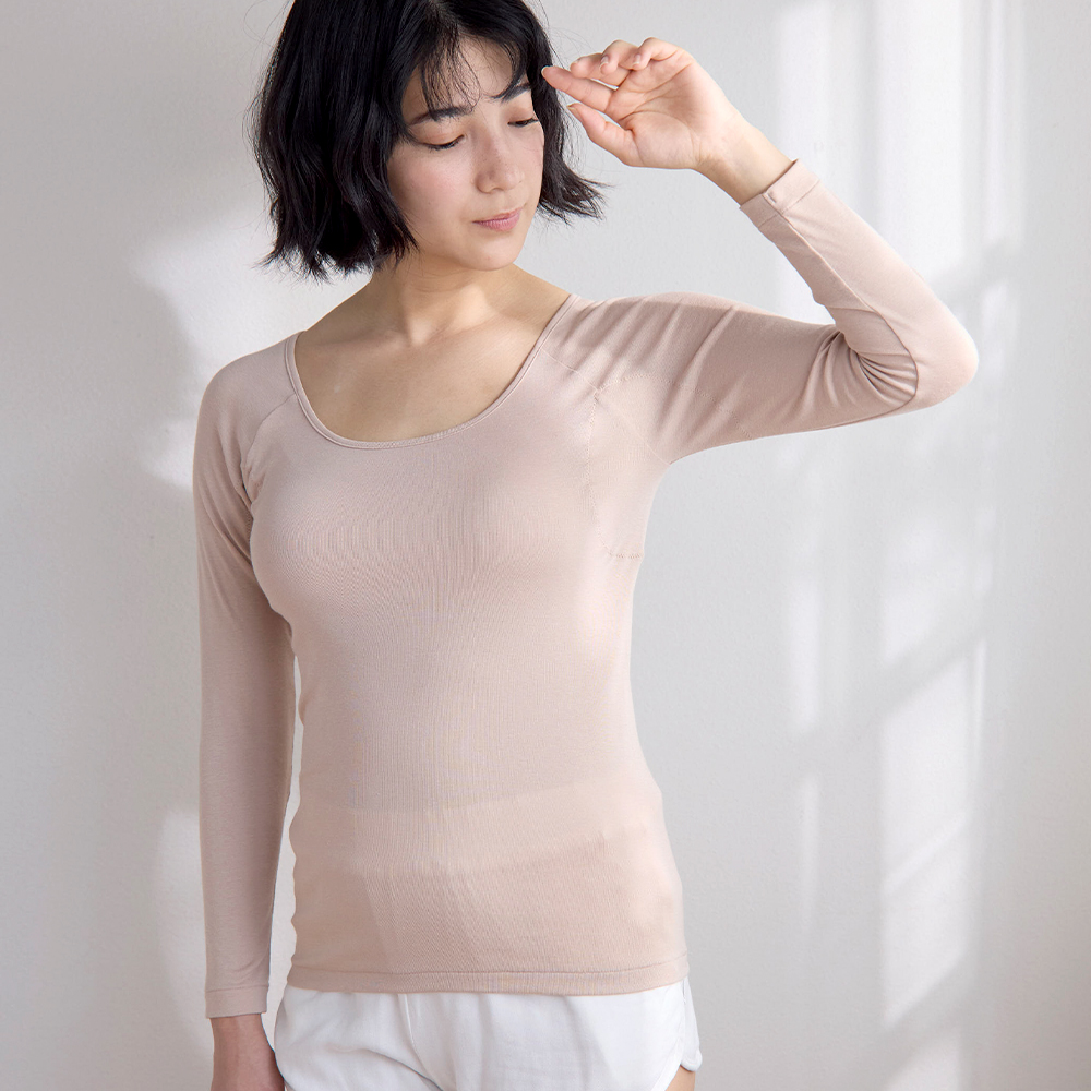 ワキにフィットして汗をキャッチ。