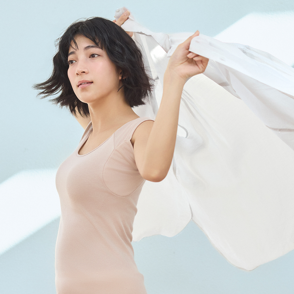 まだ肌寒くてニットの日もあるけれど、気温は春。汗ばむ日も増えてむわっと臭が気になる季節に、コットンで消臭力の高いこのインナーは一年中の相棒。これからの脇汗シーズンは特に必需品です。