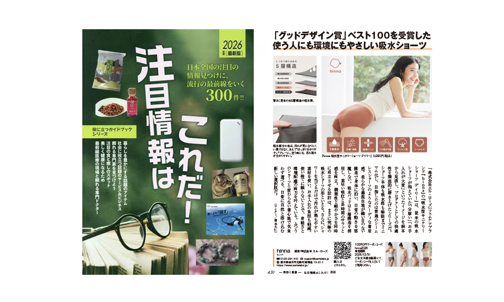 「2026年最新版 注目情報はこれだ!」に掲載されました 2026.03.09 ブランドニュース 2026年最新版 注目情報はこれだ!に掲載されました。 ■概要 出版社:ミスター・パートナー ■掲載商品 hinna 吸水型サニタリーショーツ デイリー 商品はこちら