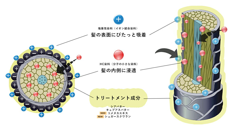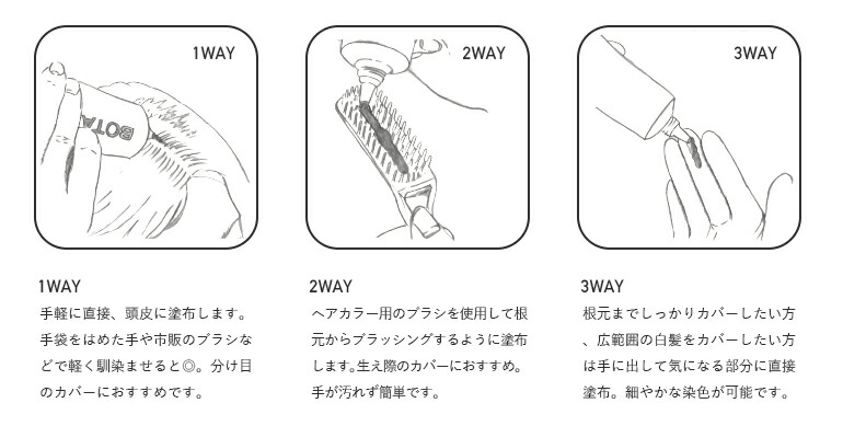 ![]() 使うたびに自然な色付け -もっと濃くなりました- 使い方は、クリームを直接気になるところに塗るだけ。 “褪色してもキレイ”をつくる 髪を色づけるのは「塩基性染料」「HC染料」のダブル染料。 | |