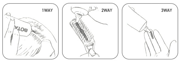 | つかいかた ●何もついていない乾いた髪の、気になる部分にジェルを塗布していきます。