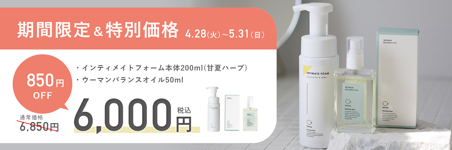 インティメイトフォーム本体&フォーム詰替え&ウーマンバランスオイルのセットはhinnaが真剣にお勧めしたい、最もお得な女性のための本気のデリケアフルセットです。