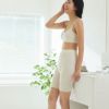 hinna ふわリブ オーガニックコットン 3分丈ボトム 包まれながら、締め付けゼロ。温度調整しやすい ゴムを一切使用せず、ふわんとマシュマロのような肌ざわり。 お肌に溶け込むような、やわらかさ。 ゴムは使用していませんが、ふわふわと柔らかく伸縮するリブニットによって自然に足のラインに沿い、お腹までしっかり包み込む安心感のある設計です。 鼠径部は、添えるだけ。 デリケートゾーンのまわりも、足の周囲も、生地がひらりと添うだけで、一切の締め付けがありません。 足ぐりにゴムは一切なく、カットしたリブ生地のふちを国内で丁寧にメロウ処理しています。 ゆったりウエストは「ゴム不使用」。 細いウエストゴムによる締め付けもストレスのひとつと考え、ウエスト部分にもゴムは一切使用していません。ショーツを支えるのは、伸縮性のある糸を編み込んだ、帯状の柔らかなオーガニックコットンのテレコリブ生地。 ゴムの強い伸縮ではなく、かといって紐のように伸び縮みしないわけでもなく。 膝上までしっかり覆う安心丈です。 股上もしっかり深めの設計で、お腹をおへその上まですっぽり包み込むデザイン。 厚みのないクロッチがゆったり伸びてちゃっかり馴染む。 クロッチは厚すぎず、幅も細すぎず。くい込みもないため体のラインにやさしく添って、着用したときにゆったりと伸びて体に馴染んでくれます。 お手持ちのショーツやふんどしショーツ1枚じゃ心もとない‥という方はクロッチ付きの3分丈ボトムを上に重ねて履くことでカバーショーツとしてもお使いいただけます。重ね履きすることで、ソワソワしがちな股部分もしっかりフィットして安心感をプラス。 とろとろ柔らかく体に添う 3分丈ボトムの身生地は、bioReオーガニックコットン100%のとろとろとしたリブニット。 肌への刺激にならないよう、ネームタグは外側に縫い付けています。