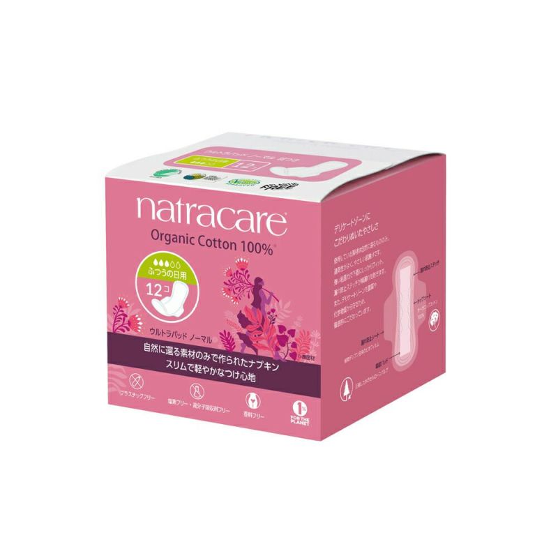 | オーガニックで、軽くてスリム。 とことん優しさにこだわった生理用ナプキン ナトラケア ウルトラパッド ノーマル (ふつうの日用・羽つき) 12個入り |