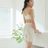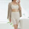お肌に溶け込むような、やわらかさ。 ゴムは使用していませんが、ふわふわと柔らかく伸縮するリブニットによって自然に足のラインに沿い、お腹までしっかり包み込む安心感のある設計です。 鼠径部は、添えるだけ。 デリケートゾーンのまわりも、足の周囲も、生地がひらりと添うだけで、一切の締め付けがありません。 足ぐりにゴムは一切なく、カットしたリブ生地のふちを国内で丁寧にメロウ処理しています。 ゆったりウエストは「ゴム不使用」。 細いウエストゴムによる締め付けもストレスのひとつと考え、ウエスト部分にもゴムは一切使用していません。ショーツを支えるのは、伸縮性のある糸を編み込んだ、帯状の柔らかなオーガニックコットンのテレコリブ生地。 ゴムの強い伸縮ではなく、かといって紐のように伸び縮みしないわけでもなく。 膝上までしっかり覆う安心丈です。 股上もしっかり深めの設計で、お腹をおへその上まですっぽり包み込むデザイン。 厚みのないクロッチがゆったり伸びてちゃっかり馴染む。 クロッチは厚すぎず、幅も細すぎず。くい込みもないため体のラインにやさしく添って、着用したときにゆったりと伸びて体に馴染んでくれます。 お手持ちのショーツやふんどしショーツ1枚じゃ心もとない‥という方はクロッチ付きの3分丈ボトムを上に重ねて履くことでカバーショーツとしてもお使いいただけます。重ね履きすることで、ソワソワしがちな股部分もしっかりフィットして安心感をプラス。 とろとろ柔らかく体に添う 3分丈ボトムの身生地は、bioReオーガニックコットン100%のとろとろとしたリブニット。 肌への刺激にならないよう、ネームタグは外側に縫い付けています。 *写真はふんどしショーツです