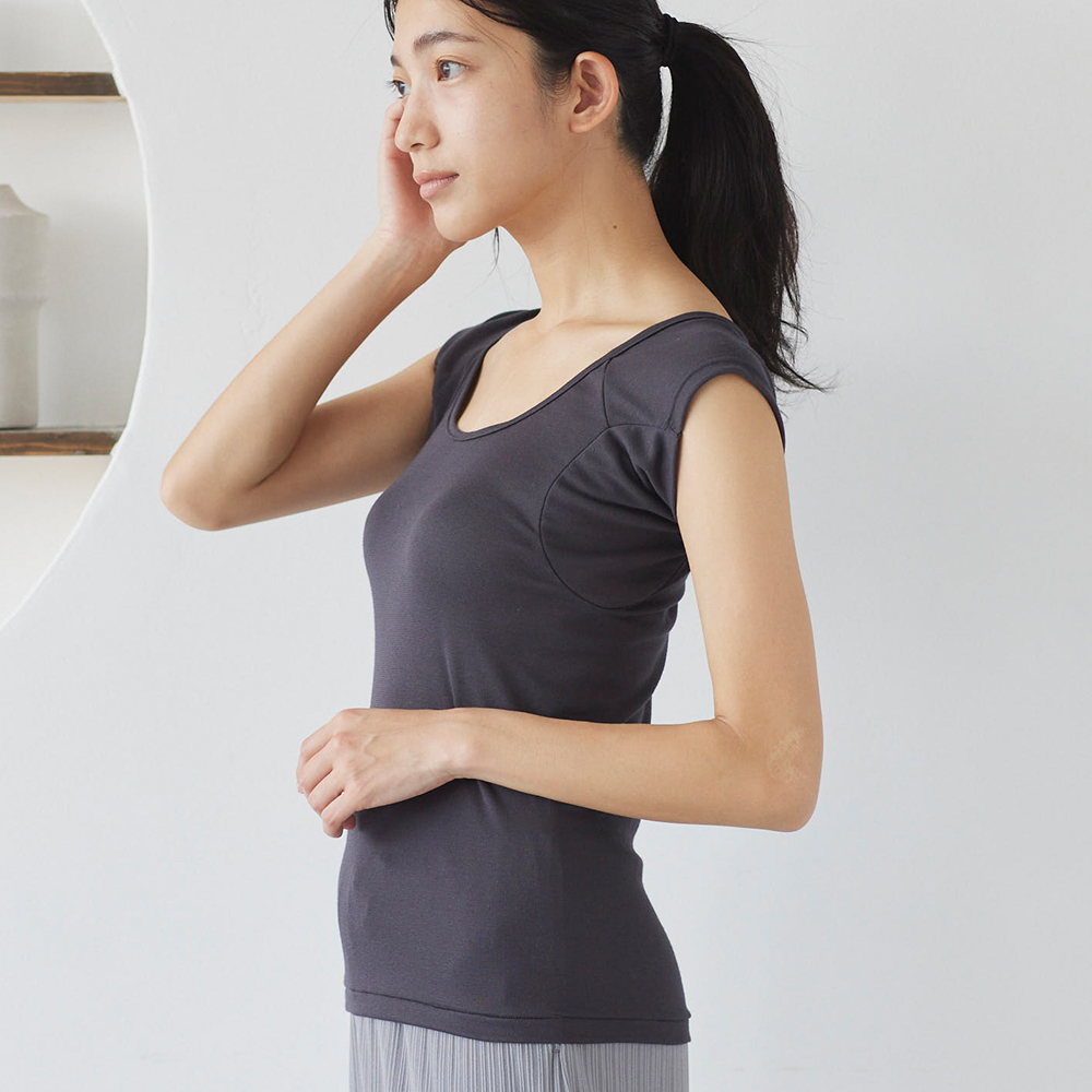 デイリーに身にまとえるインナーで、汗・皮脂量の多い胸元もジメジメさせずさらりと保ちます。