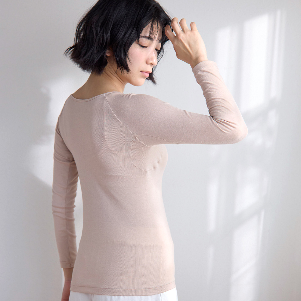 手首までカバーする9分袖。冬の汗やニオイをさらりと解決して清潔な安心感をつくります。