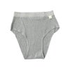 ゆったりウエストは「ゴム不使用」。 細いウエストゴムによる締め付けもストレスのひとつと考え、ウエスト部分にもゴムは一切使用していません。ショーツを支えるのは、伸縮性のある糸を編み込んだ、帯状の柔らかなオーガニックコットンのテレコリブ生地。