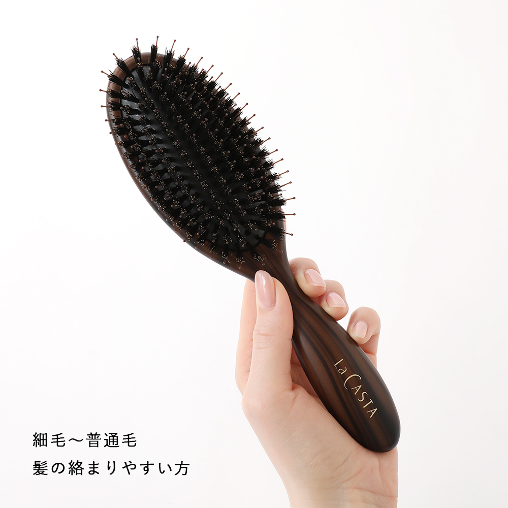 ラ・カスタ オフィシャル ヘッドセラピストがプロデュースしたこだわりのブラシは、特製のミックス毛(豚毛・ナイロン毛)を使用。