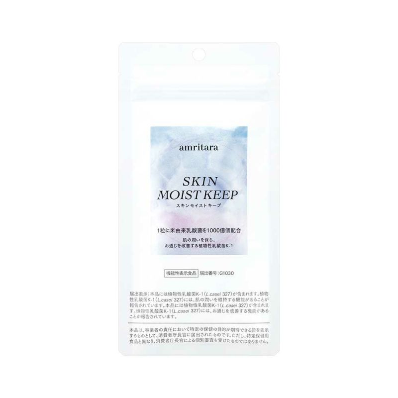 アムリターラは、この植物性乳酸菌 K 1(L.casei 327)と菊芋エキス末、セラミド含有醤油粕エキス末を配合したサプリメント「 SKIN MOIST KEEP(スキンモイストキープ)」を開発。健やかな毎日をサポートします。