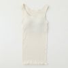 ![]() きゅうくつな着心地から、身体を解き放つ。 オーガニックコットンの寛ぎタンクトップ。 hinna ふわリブ オーガニックコットン カップ付きタンクトップ ゴムを一切使用せず、ふわんとマシュマロのような肌ざわり。 きゅうくつな着心地や食い込みなど身体が日々感じているストレスをくつろぎに変える、オーガニックコットンのカップ付きタンクトップです。 アンダーはテープレス仕様で、しめつけ感を最大限に軽減。お腹までしっかり包み込む安心感のある設計で、肌に溶け込むように身体に心地好くフィットします。それでいて身体のラインに美しく沿う繊細なタッチを兼ね備えています。 とろんと柔らかなリブ生地には、綿花をつくる土壌から、生産者とその家族の暮らしにまで目を配るbioRe PROJECTによるオーガニックコットンを使用。 編みから染色に至るまでも、その風合いと魅力を最大限に守り活かす技術を採用しています。 身体を思いながら、世界のモノにまつわる問題に対しても向き合う糸口になれたら。 自分も、未来も気持ちよくなれる解放タンクトップです。 ![]() お肌に溶け込むような、やわらかさ。 カップ付きタンクトップを平置きすると、やや面長なシルエット。お腹までしっかり包み込む安心感のある設計です。 繊細に編み上げたリブニットの着用感は快適そのもの。やわらかな伸縮力で身体にフィットし、つっぱり感やきゅうくつ感を一切感じさせません。 丸胴の生地をそのまま使っているので、わきに縫い目がありません。内側のわずかな縫い目も、やさしい肌あたりの縫製仕様です。 ![]() 生地感もかたちも、絶妙バランス。 すそは厚みのない端かがり仕様で、自然とゆるいフリルのように。カットしたリブ生地のふちを国内で丁寧にメロウ処理しています。 身体のラインを拾い過ぎない絶妙な薄さとサイズ感でタックインしてももたつかず、すっきり。シルエットにも響かないさらりと軽い着心地を叶えます。 ![]() 首や腕まわりは、太めのパイピングをほどこして型崩れしにくいように。 ![]() ゆったりアンダーは、「ゴム不使用」。 細いアンダーゴムによる締め付けもストレスのひとつと考え、アンダー部分にもゴムは一切使用していません。アンダーを支えるのは、伸縮性のある糸を編み込んだ、帯状の柔らかなオーガニックコットンのテレコリブ生地。生地自体がフニフニと伸縮し、胸の下にそっとフィットします。 ![]() ゴムの強い伸縮ではなく、かといって紐のように伸び縮みしないわけでもなく。 オーガニックコットンの生地自体がやわらかく伸び縮みします。 およそ3cmと幅広のふっくらとした帯状で、食い込まず安心感のあるフィット力です。 ![]() バストもプレーンに。 バスト部分は非常にシンプル。 取り外し可能なノンワイヤーのモールドカップが組み込まれています。弾力性があるパッドは締め付けずに、胸が脇へ広がるのをやさしく包み込みしっかり中心へ。バストラインまる~く整えます。 ![]() 継ぎ目のないbioReオーガニックコットンのさらっと1枚生地が、ゆるくドレープしてデリケートな肌に寄り添います。摩擦も少なく、開放的な着心地。 生地のかがり処理も丁寧に、肌に触れたときの心地よさを最優先におつくりしています。 ![]() 外着の見た目で、くつろぐ優越感。 宅配便の受け取りやリモート会議。おうちで過ごす時間が長くなることに比例して、おうちにいても“きちん”とした格好で過ごすことも多くなったいまだから。 一日中軽い着心地でくつろぐための素材感やシルエットにこだわりながら、そのまま外に出かけられるような“きちんと顔”を兼ね備えました。 ![]() とろとろ柔らかく体に添う オーガニックコットン100%のリブニット。 カップ付きタンクトップの身生地は、bioReオーガニックコットン100%のとろとろとしたリブニット。 ふっくらと柔らかな肌触りで、身体のラインに合わせてとろんとキレイなドレープを描きます。 カップ付きタンクトップで悩まされがちな食い込みなどのストレスもなく、包み込まれるような着心地。 着けていたっけ?と思うほどの解放感で過ごせます。 ![]() ブランドネームもオーガニックコットンでお作りしています。 気になる方は取り外してご使用ください。 ※ブランドタグにつきましては、現在は肌に当たらないように乗せ縫いの仕様となっております。 ![]() 透明な材料で、透明なものづくりを。 持続的な発展のために世界が抱える大きな問題と綿花栽培は、密接に関係しています。 hinna オーガニックコットンシリーズでは、それを見て見ぬふりすることが無いよう、綿花をつくる背景から編み上げまでのすべてを厳格に管理しています。 材料となる綿花は、公正な契約によってタンザニアのオーガニック農場で作られるbioRe COTTONを使用。 GOTS(Global Organic Textile Standard)認定工場で、他の原綿の混入を防ぐべく厳重な管理のもと紡績された糸は、国内有数のニットの産地 和歌山で、長年の経験と技術によって1