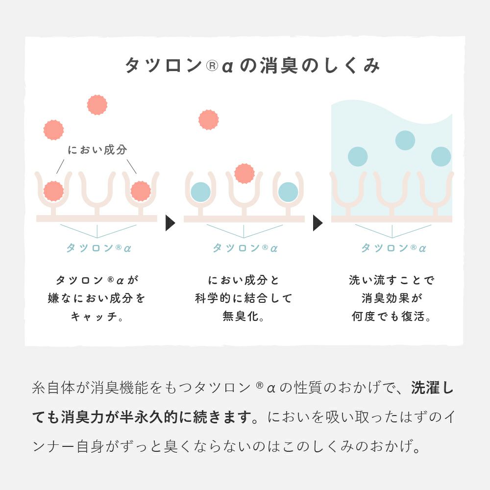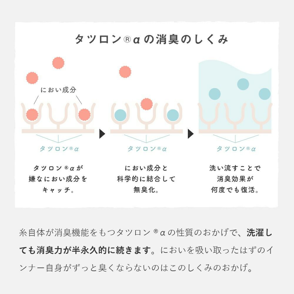 成分や菌など様々なニオイの原因を無力化・抑制する消臭・抗菌繊維をブレンド。