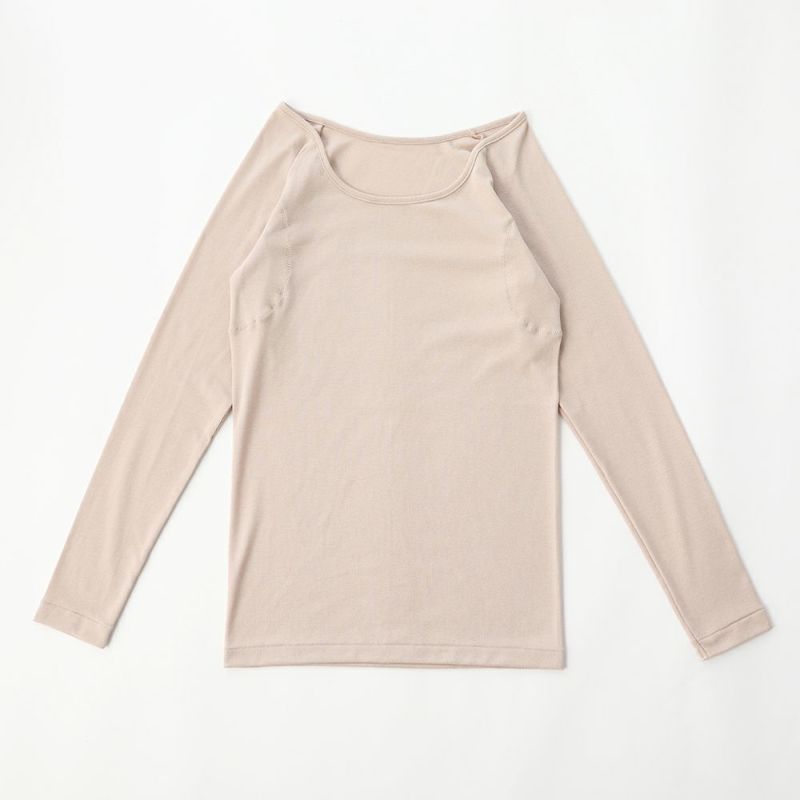 手首までカバーする9分袖は、寒さや汗冷えを防ぎながら快適な着心地をキープ。 薄手のニットやカーディガンの下でももたつかず、袖口が響きにくい絶妙な長さがポイントです。 | コットン混のナチュラルな肌触り