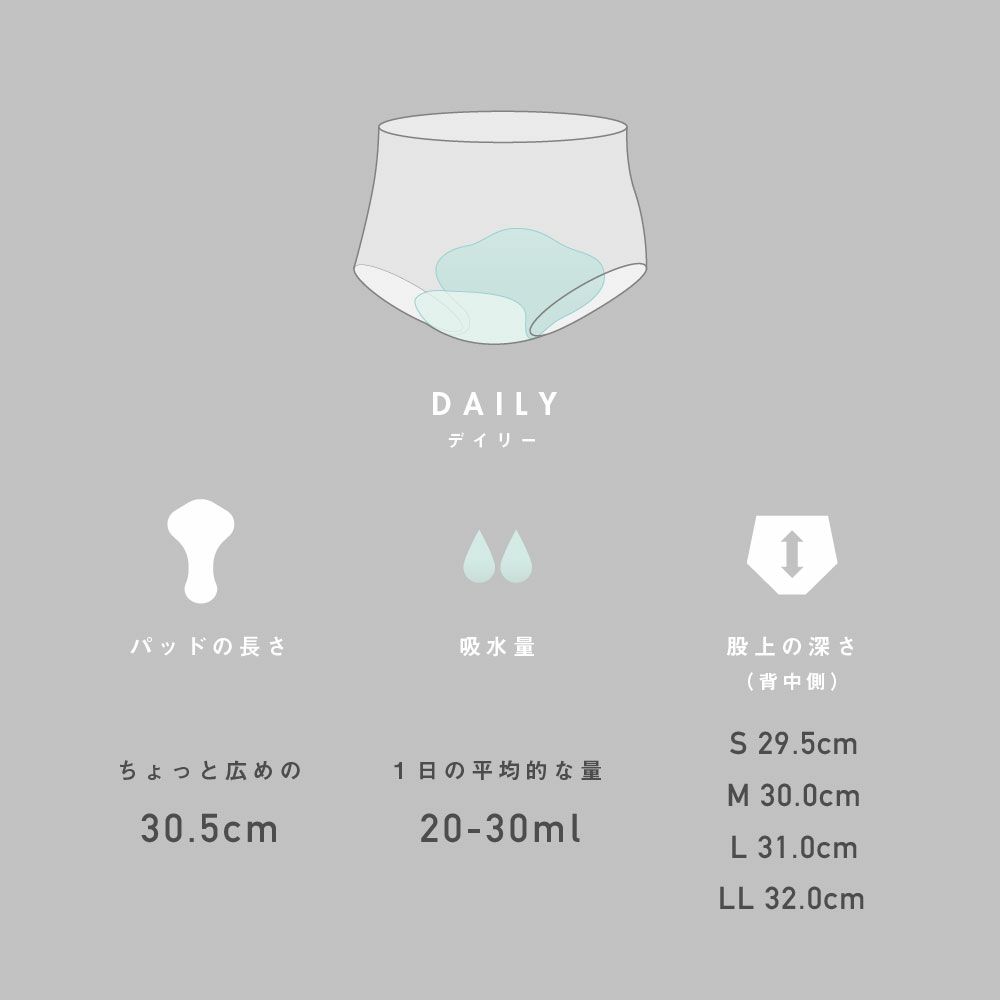 サイズ選びのポイント お客様のお声を受けて、2023年5月にサイズ感を改良いたしました。これまでモレの不安感が軽減されるようフィット感のある設定にしておりましたが、大きめサイズを購入されるお客様が多かったため、通常サイズでお選びいただけるよう改良しております。ご自身のヒップ・ウエストに合ったサイズをお選びください。