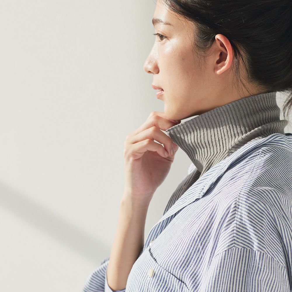 肌側はシルクで、さらりとオールシーズン快適。冬は暖とりアイテムとしても大活躍する保温力。