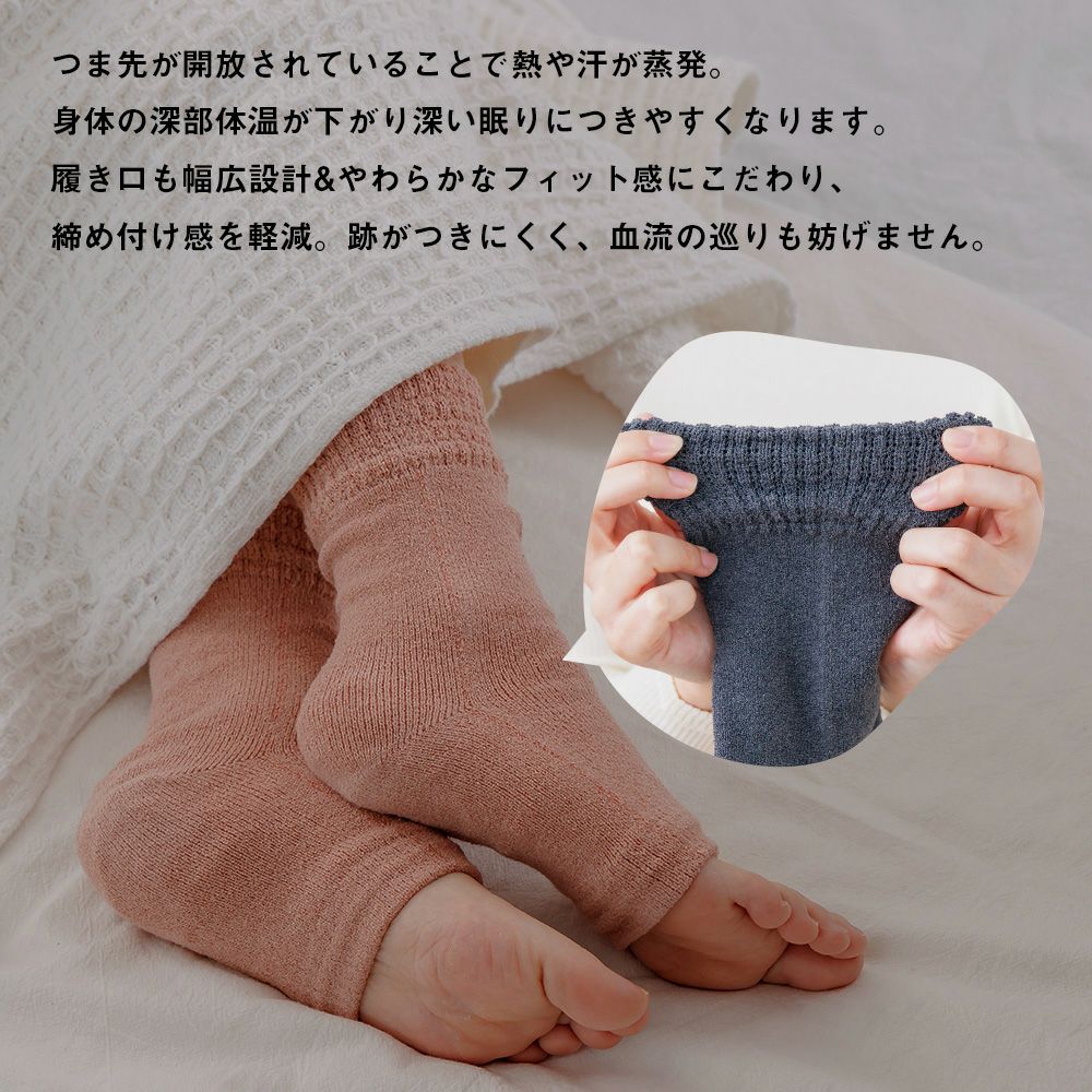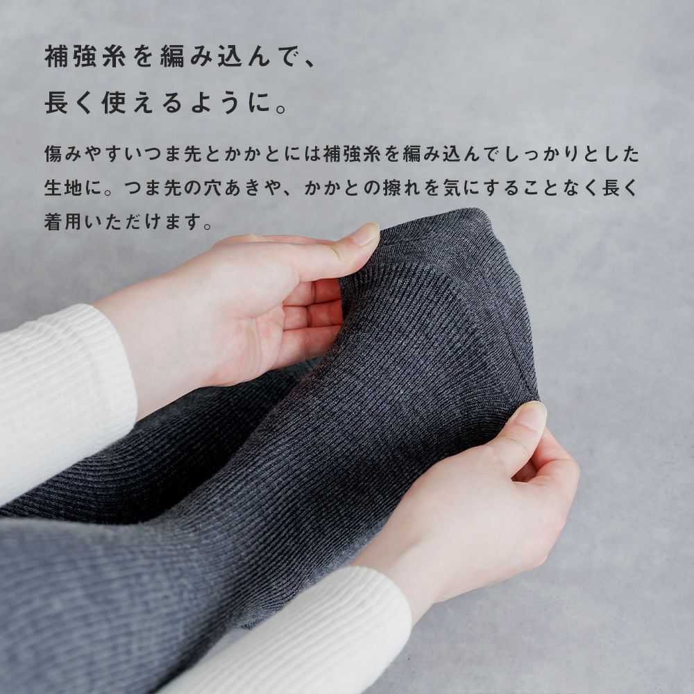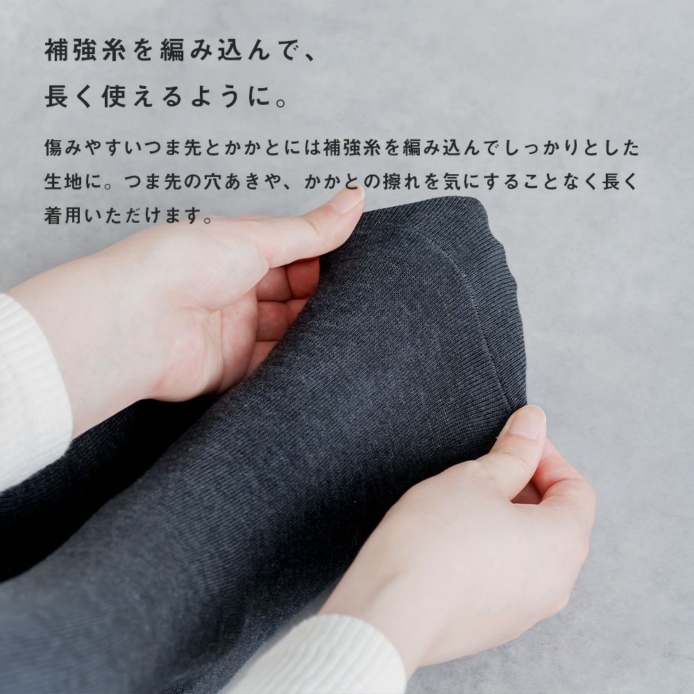 特殊な編み方で、表側は吸湿性や保温効果のある綿・レーヨン素材を、