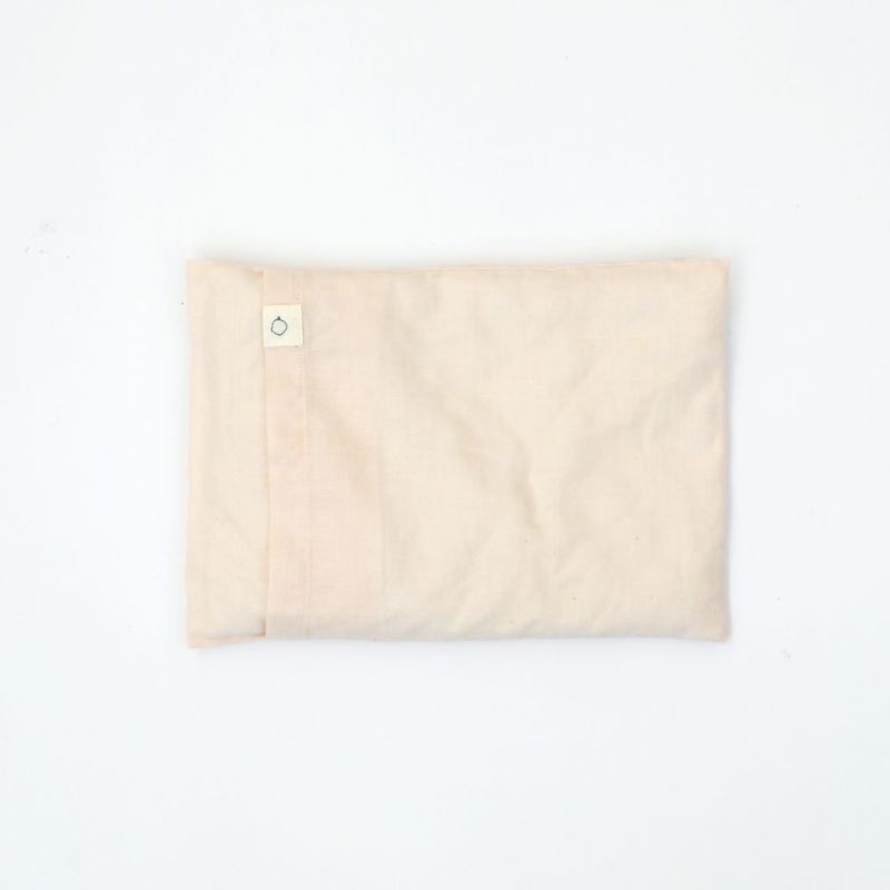 アイピローなどによく使用される玄米や小豆よりも粒の小さな米ぬかを多く含むので、粒感が少なく、くったりやわらかな感触。