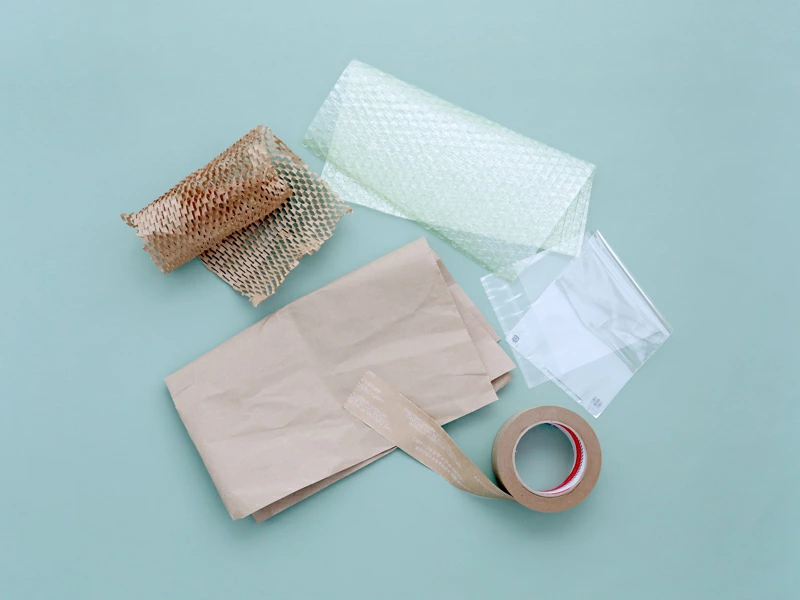 FSC認証の紙や古紙、リサイクル可能なガムテープを梱包資材に使用しています。 また、プチプチやビニール袋など、プラスチック製だったものはバイオマス素材のものへ移行中です。