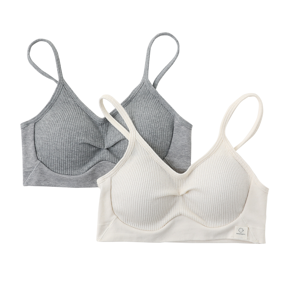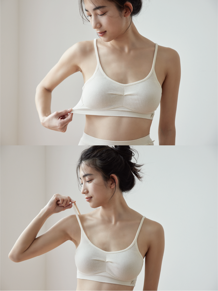 - 肌へのストレスをなくすことを第一に考えた結果、ソフトブラにはアジャスターを付けていません。シンプルなオーガニックコットンの肩紐はほどよく伸縮性があり、また肌あたりも柔らかなため、肩への食い込みストレスも少なく自然にフィットしてくれます。