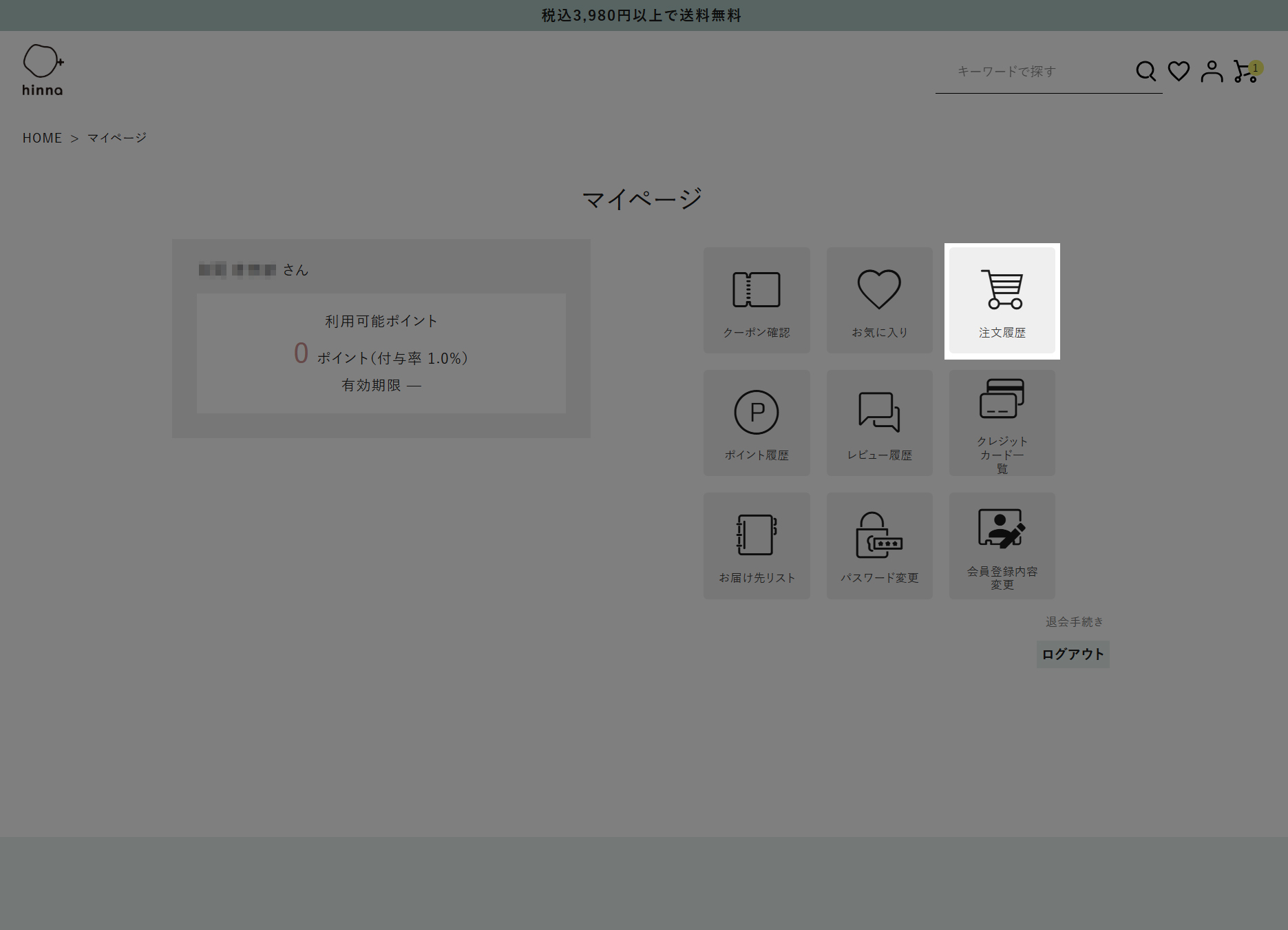 hinna(ヒンナ)公式オンラインショップにログインする。