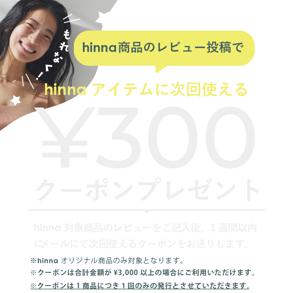 メールでhinna 対象商品に使える300円OFFクーポンをGET!
