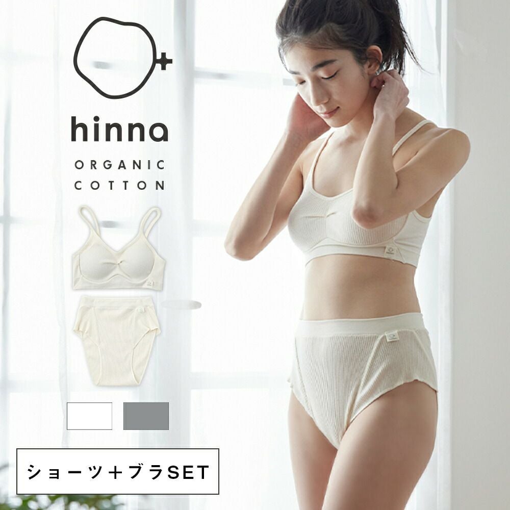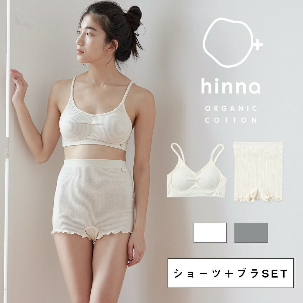 hinna(ヒンナ)ふわリブ オーガニックコットン 1分丈ショーツ&ソフトブラ セット