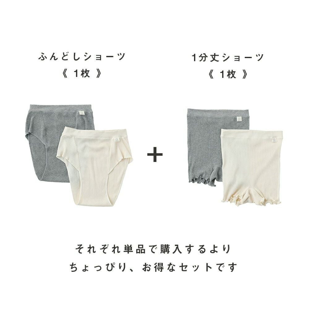 hinna(ヒンナ)ふわリブ オーガニックコットン ふんどしショーツ&1分丈ショーツ セット